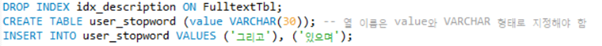 원래 있던 전체 텍스트 인덱스를 삭제하고 불필요한 중지 단어를 지정.