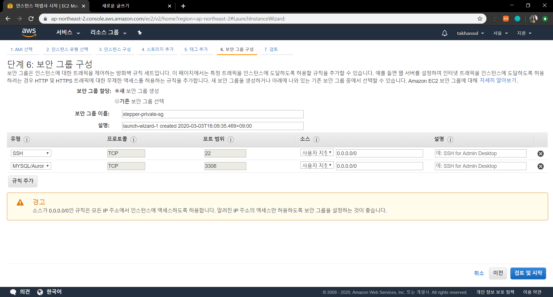 외부에서도 root 유저를 통해 mysql에 접속하도록 설정하였다.