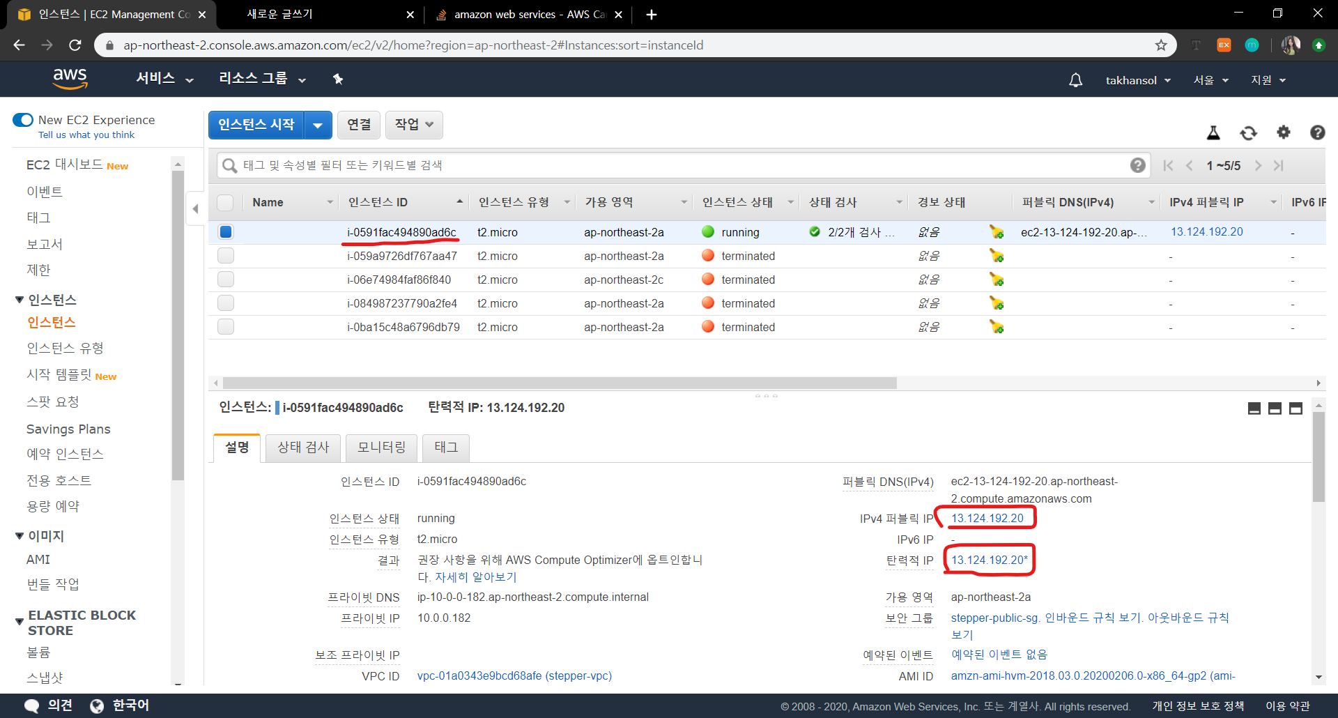 aws는 인스턴스를 멈추거나 데이터를 전달할 때 사용료를 부과하지 않는다. 멈춘 인스턴스에 대해서는 EBS volumes의 스토리지의 비용만을 부과한다.